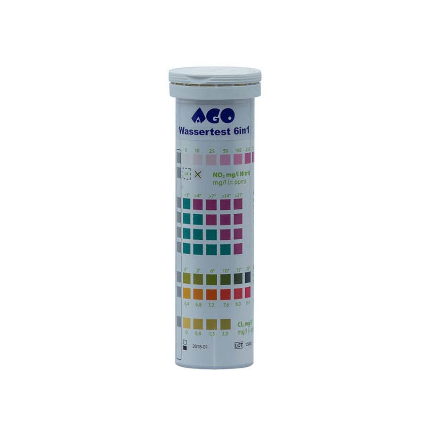 Mit dem AGO Wassertest 6in1 lassen sich schnell, einfach und sicher die 6 wichtigsten Wasserwerte im Süßwasser ermitteln pH-wert, Karbonat – und Gesamthärte, Nitrit, Nitrat und auch Chlor.