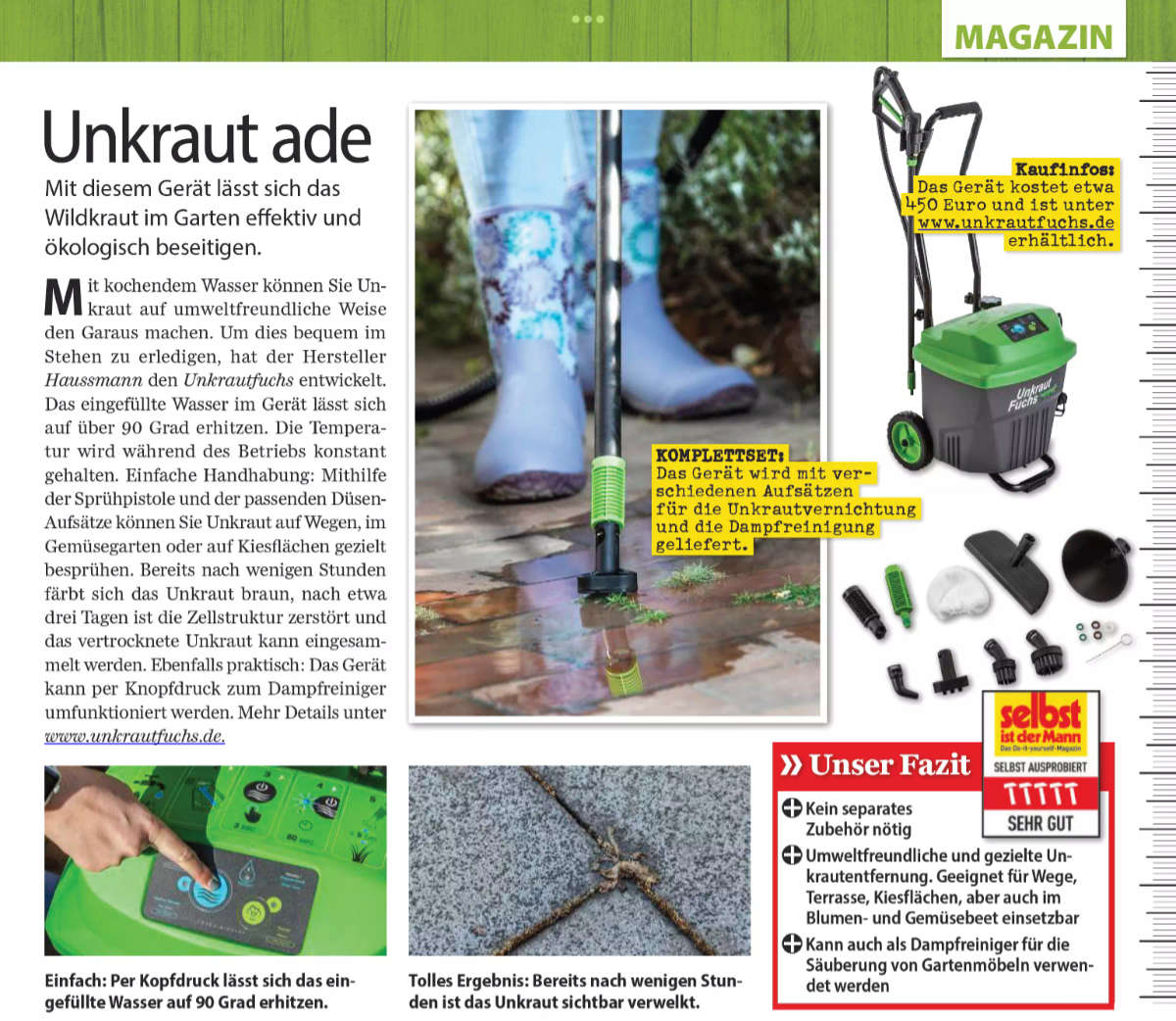 Das Magazin „Selbst ist der Mann“ hat den Unkrautfuchs mit „Sehr gut“ bewertet.