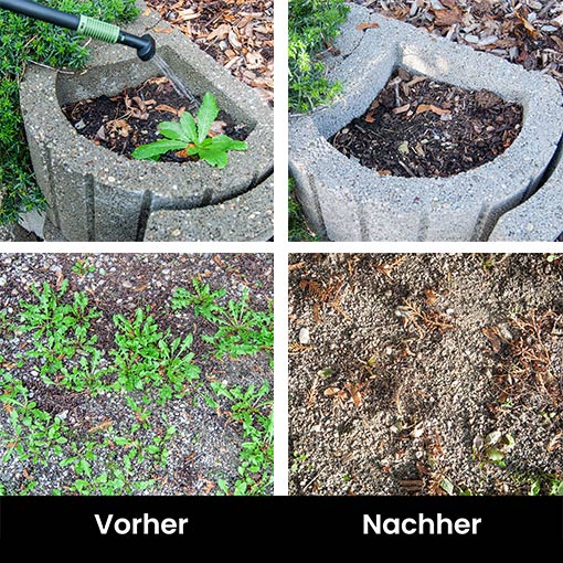 Der Einsatz ist problemlos auf Terrassen, hochwertiger Keramik und überdies bei jeder Witterung möglich. Die Behandlung erfolgt so präzise, dass Sie auch auf Rasen oder einem Blumenbeet das Unkraut punktgenau vernichten können.