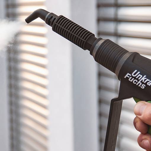 - Sie sprühen das Unkraut lediglich für 15 Sekunden mit Heißwasser aus dem Unkrautfuchs FoxOne ein. Dies zerstört die Zellstruktur der Unkrautpflanze.